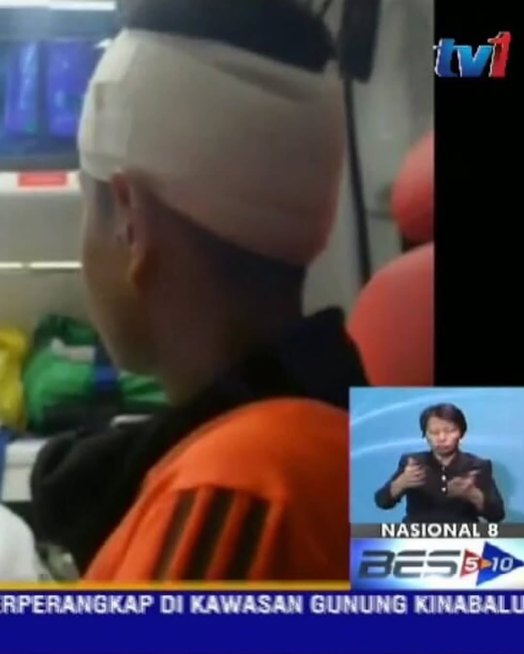 Desperate for news, his father switched to TV1 Malaysia and saw a boy in an ambulance with a bandaged head.