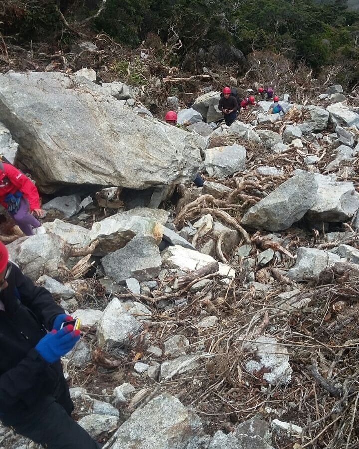 With no resources, the guides decided that the entire group would hike eight kilometres down destroyed terrain to get help.