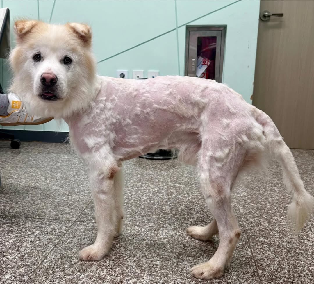 What should’ve been a joyful day for a dog in South Korea turned into a disheartening ordeal after it was returned to its shelter just seven hours after being adopted, with its fur shaved off in patches.