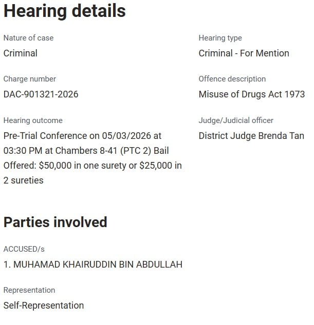 On Thursday (22 Jan), Muhamad Khairuddin was charged in court with the trafficking of Kpods.