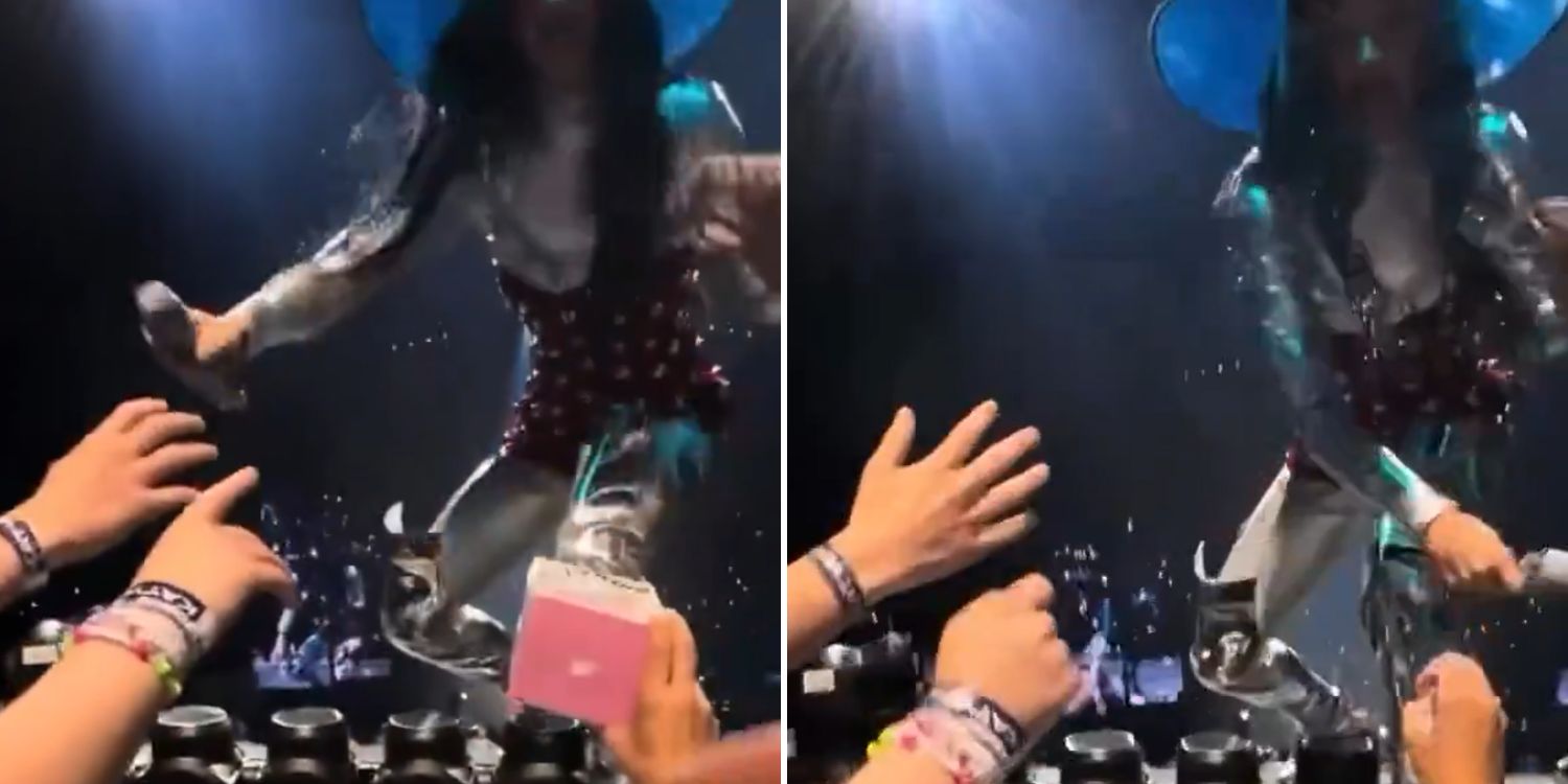 The singer was performing her ballad ‘I’m Still Breathing’ when she swatted the box from a fan’s hand to the ground.