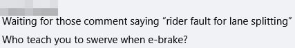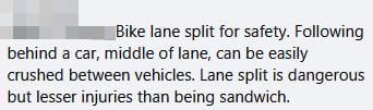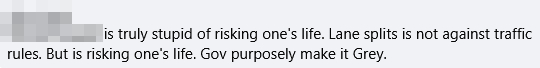 Some netizens pointed out that while lane-splitting is not illegal, it is “stupid” and puts riders’ lives at risk.