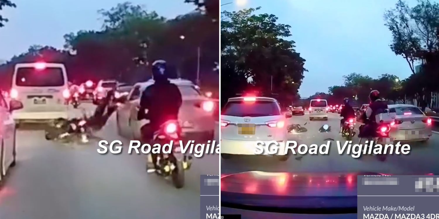 PHV suddenly swerves on TPE, hits lane-splitting motorcyclist who flips onto road