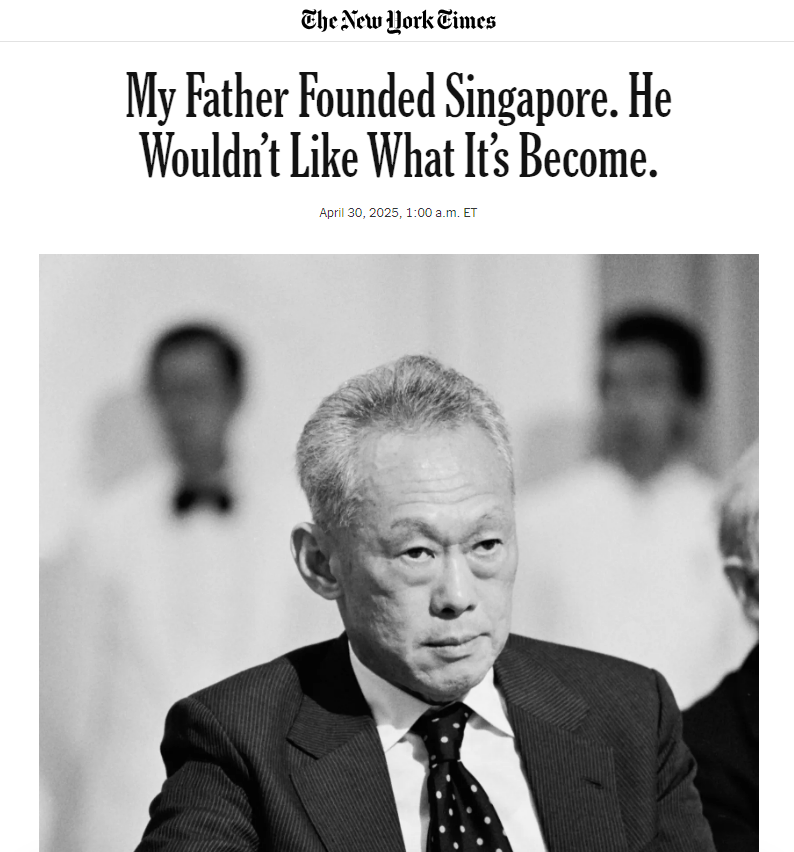 In the piece, titled ‘My Father Founded Singapore. He Wouldn’t Like What It’s Become’, Mr Lee Hsien Yang reflects on his father’s legacy and expresses concern about the current state of governance under the People’s Action Party (PAP).