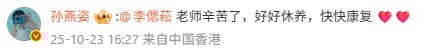 Sun commented, “Teacher, you’ve worked hard. Please rest well and recover soon.”
