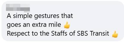 The incident struck a chord online, with many netizens praising the SBS Transit team for their compassion and willingness to go beyond their duties.