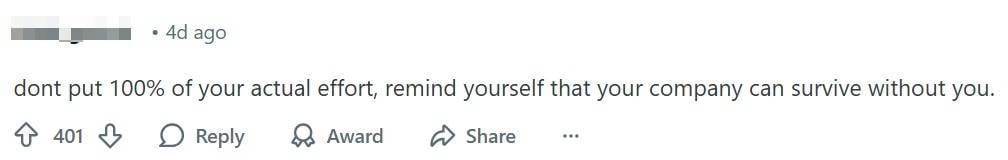 A netizen urged the OP not to give 100%, reminding them that the company can survive without them.