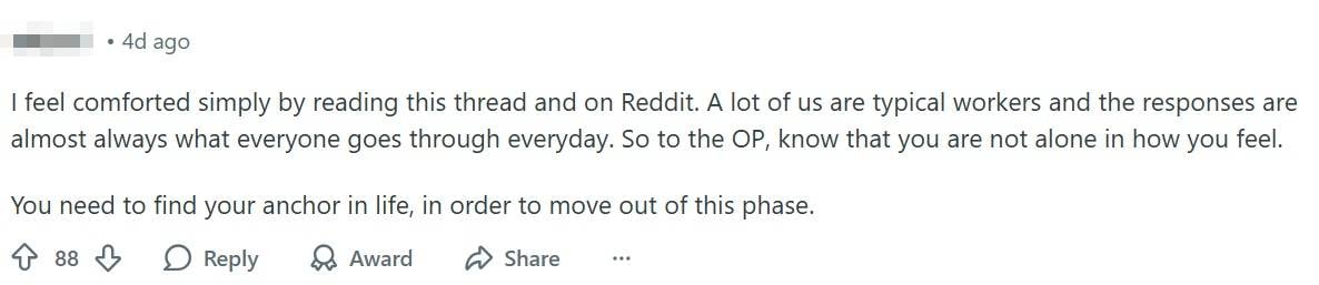 The post quickly gained traction, resonating with netizens who shared similar feelings about burnout and work fatigue. Several Redditors also shared their own coping mechanisms.