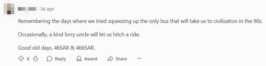 One netizen similarly pointed out the area’s seclusion: “Remembering the days [when] we tried squeezing up the only bus that [would] take us to civilisation in the 90s.”