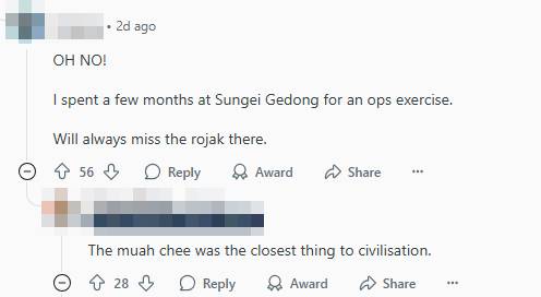 One user shared that they “will always miss” the rojak stall they frequented during training. Another chimed, “The muah chee was the closest thing to civilisation”.