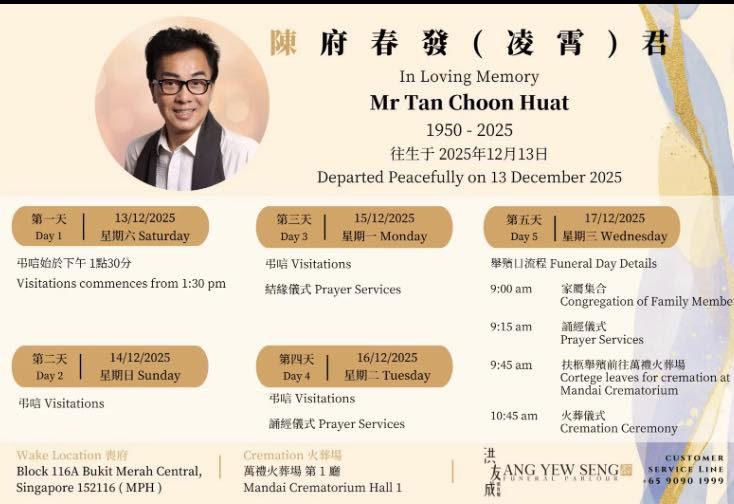 According to an obituary being circulated online, Ling Xiao’s wake is at Block 116A Bukit Merah Central.