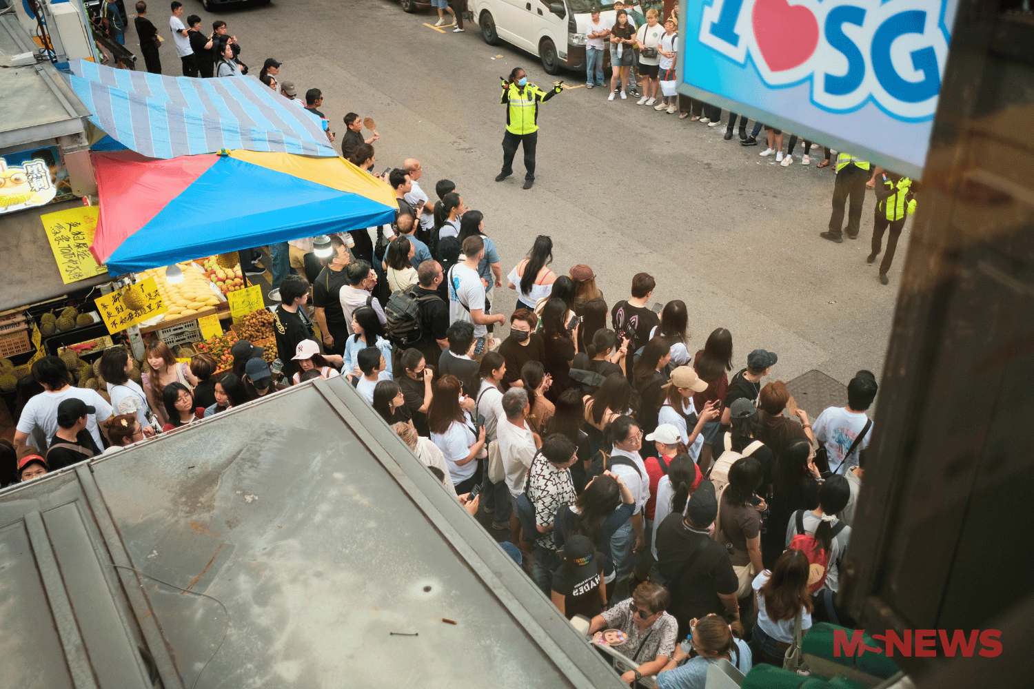 Sure, the area is usually lively and swarming with tourists, even on a regular weekday afternoon. But to the point that officers in high-vis jackets are needed to direct people around?