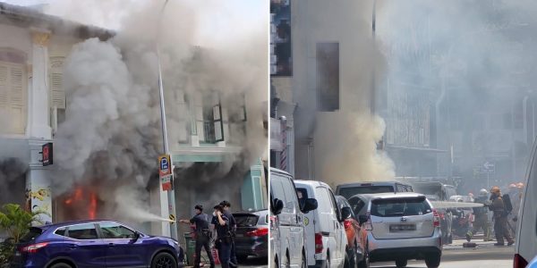 Fire breaks out at shophouse in Little India, police officers & SCDF personnel battle flames