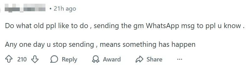 One commenter proposed sending daily “good morning” WhatsApp messages, similar to what many elderly people already do with friends.