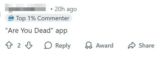 Another commenter suggested using the viral “Are You Dead?” app that requires the user to check in every two days to confirm that they are alive.