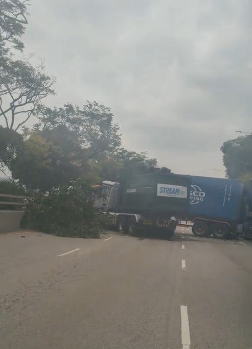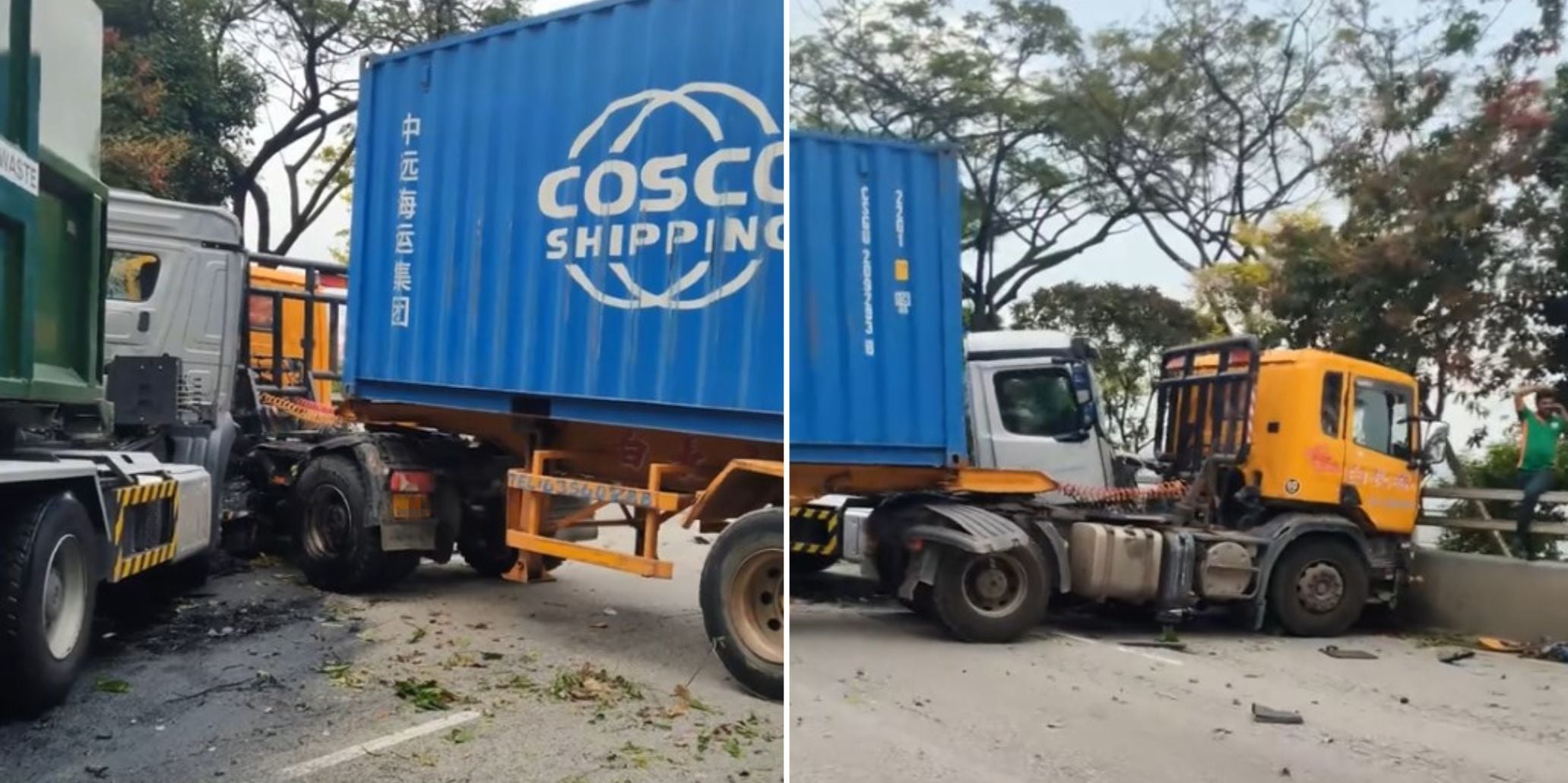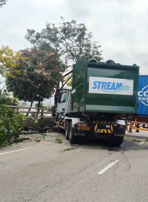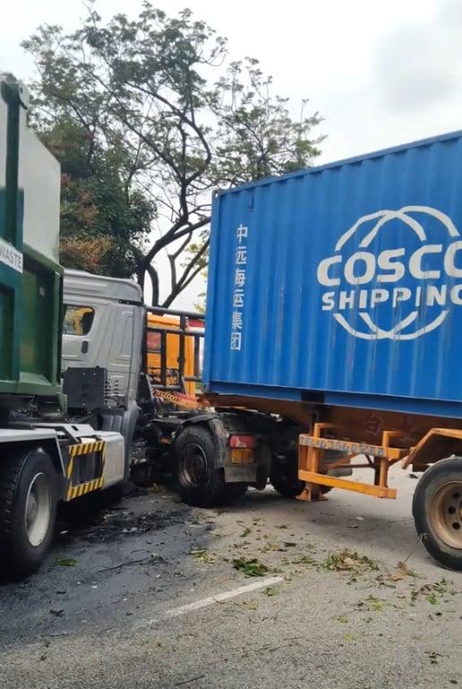 The cabin of the trailer seemed to have crashed head-on with the divider, while the cabin of the waste collection truck could also have made contact with the trailer.
