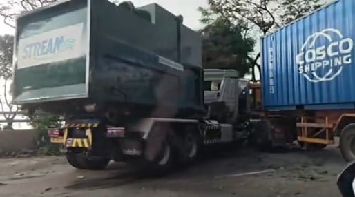 From the footage, one of the vehicles was a waste collection truck, while the other was a trailer.
