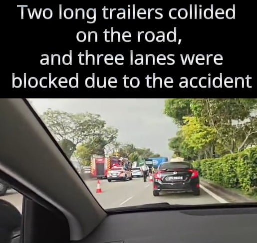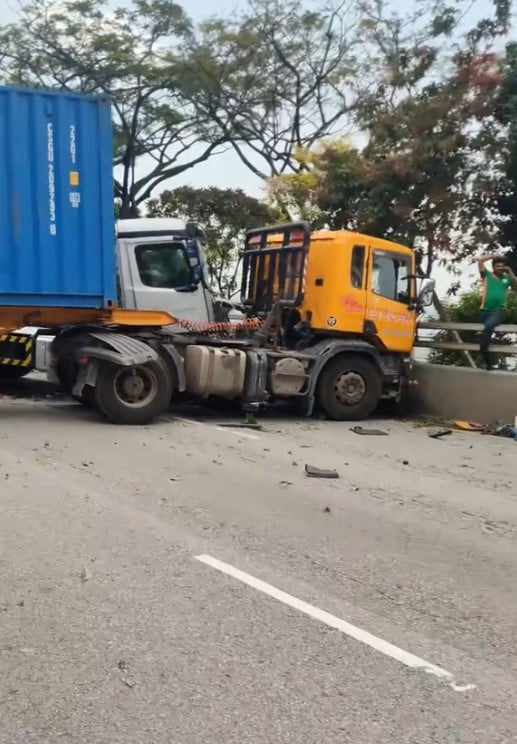 Videos of the aftermath posted on TikTok showed the heavy vehicles splayed across Jurong Island Highway, having apparently both crashed into the centre divider.