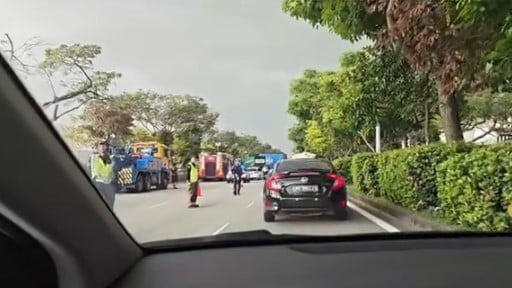 Lorry accident causes 3-lane blockage along Jurong Island Highway