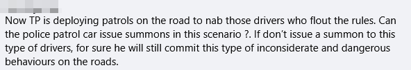 Netizens had mixed reactions to the incident, with one wondering if the police could have also issued a summons to the lorry driver in this scenario to serve as a greater deterrent.