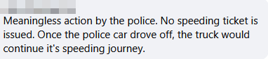 Another commenter dismissed the police’s actions as “meaningless”, claiming that the lorry would resume its behaviour once the police had left.