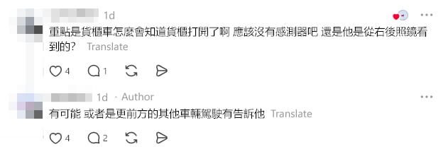 Translation: “The main question is, how did the truck driver even realise the container was open? There shouldn’t be any sensors, right? Or did he spot it through his right-side mirror?”