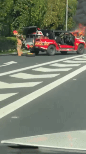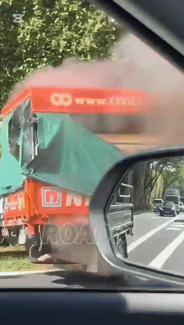 In a video of the incident posted by ROADS.sg on Facebook, thick black smoke and flames were seen billowing from the orange vehicle.