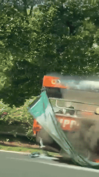 The footage, taken by a passing vehicle, showed the lorry’s cabin almost totally engulfed in flames.