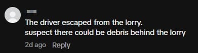 A TikTok video posted that night showed the charred items piled up in the lorry, whose cabin appeared to be relatively unscathed.