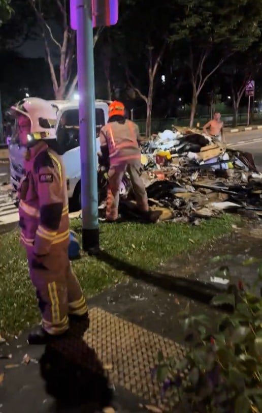 In another video posted by the same account, an SCDF officer is seen moving some of the items on the grass verge onto the lorry.