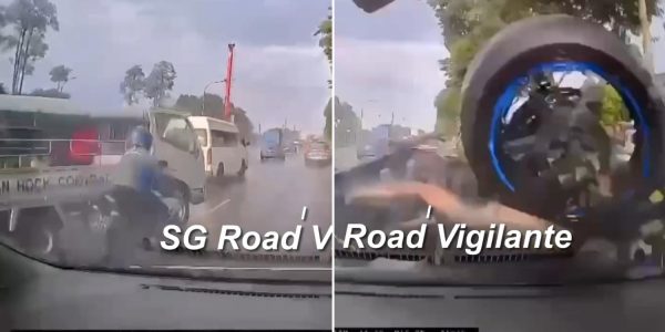 Lorry hits lane-splitting motorcycle on KJE, sends rider flipping upside down