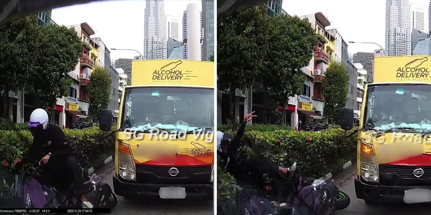 Footage of the incident, posted by SG Road Vigilante on Facebook, showed the rider falling into the bushes due to the impact.