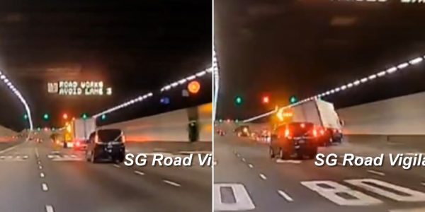 Lorry nearly tips after swerving at last second to avoid road works in MCE tunnel