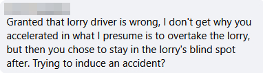 The dashcam owner also noted that the lorry driver had failed to keep left on the BKE, a requirement for large vehicles to ensure smoother traffic flow.