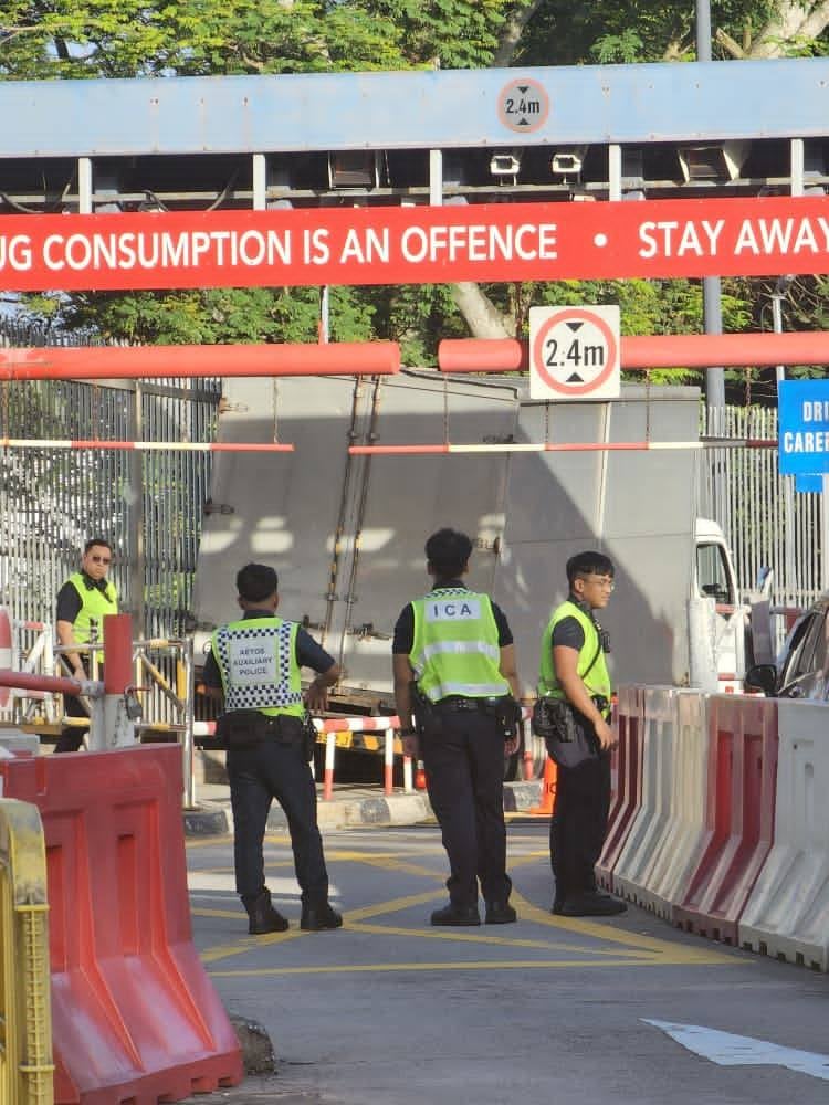 Motorcyclists forced to use car lane at Woodlands Checkpoint after lorry accident