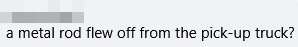 Fortunately, the rod shot past the car and loudly clattered onto the road.