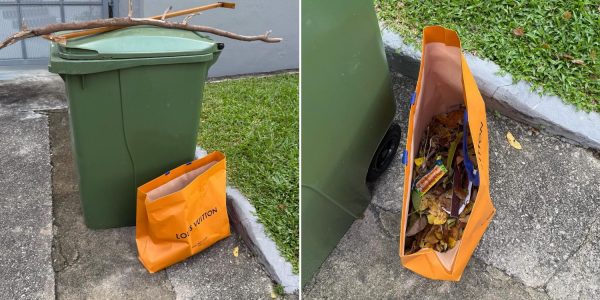 Cleaner in S’pore uses Louis Vuitton paper bag for leaves & trash, sparks debate about luxury goods