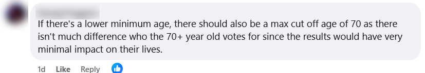 Some users agreed that young people should be able to vote for their future, with one commenter believing that those above a certain age should no longer vote, as the results impact them less in the long term.