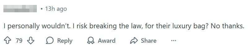 Another commenter pointed out that breaking the law for luxury bags wasn’t worth it.
