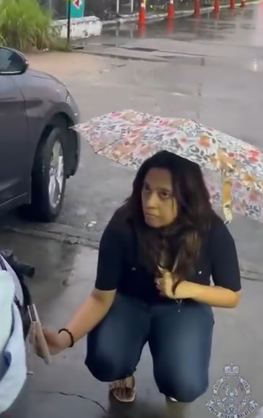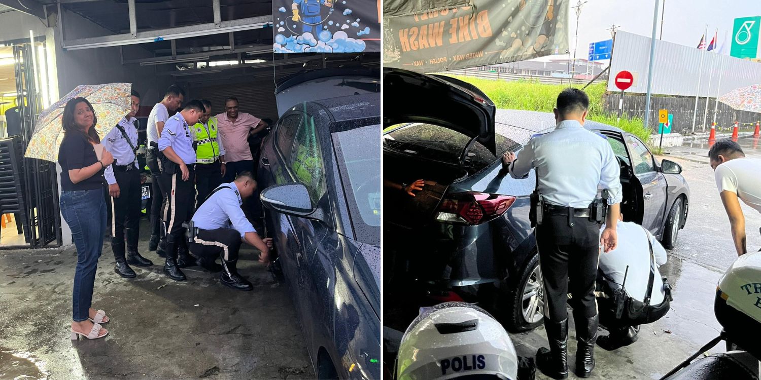 A Singaporean driver who developed a flat tyre in Malaysia was lucky to have come across Malaysian police officers who came to her rescue.