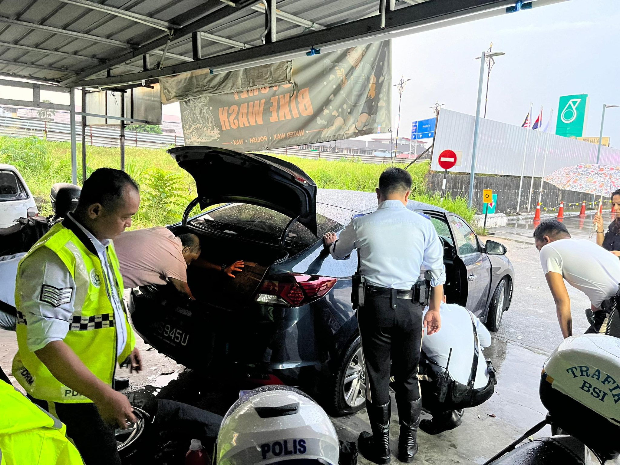 S’porean driver develops flat tyre near Malaysia customs checkpoint, helped by police