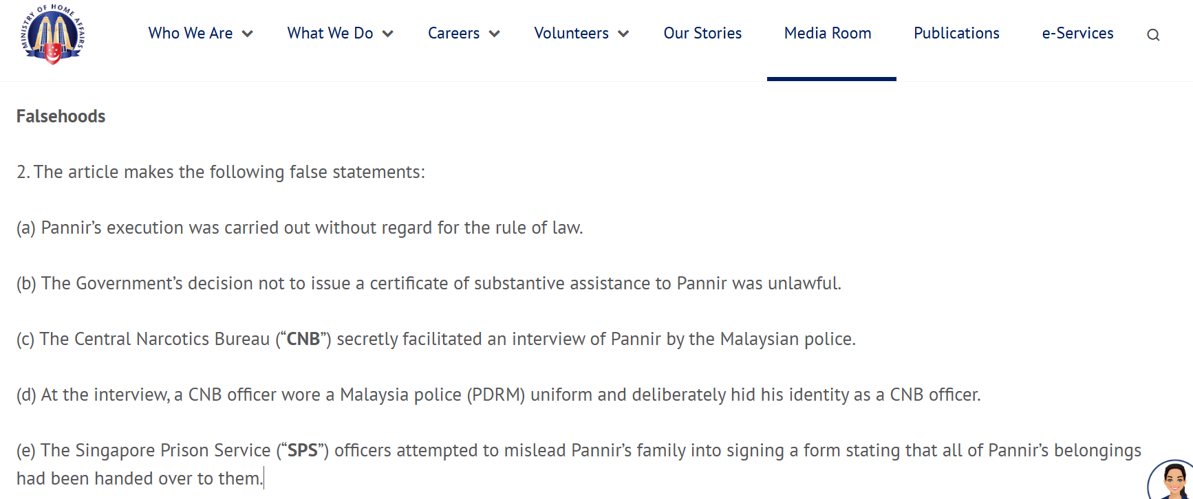 The ministry also clarified that Pannir was not issued a certificate of substantive assistance because he did not substantively assist CNB, and that the allegations involving CNB and SPS officers were false.