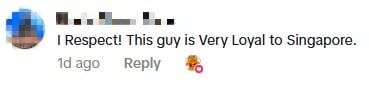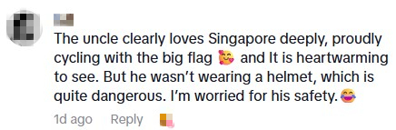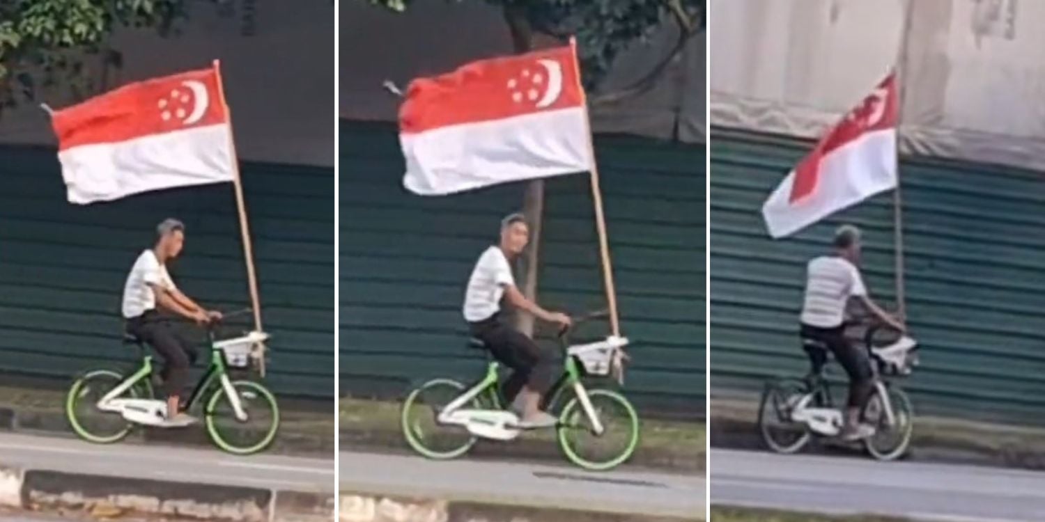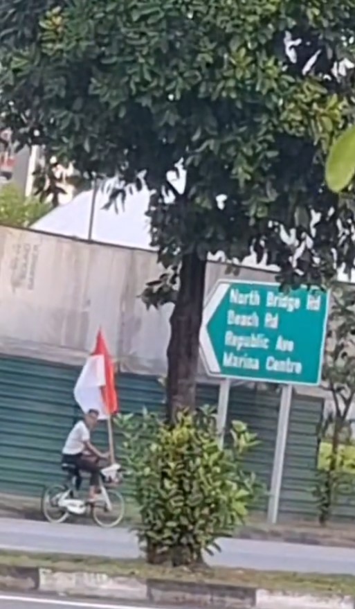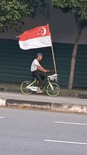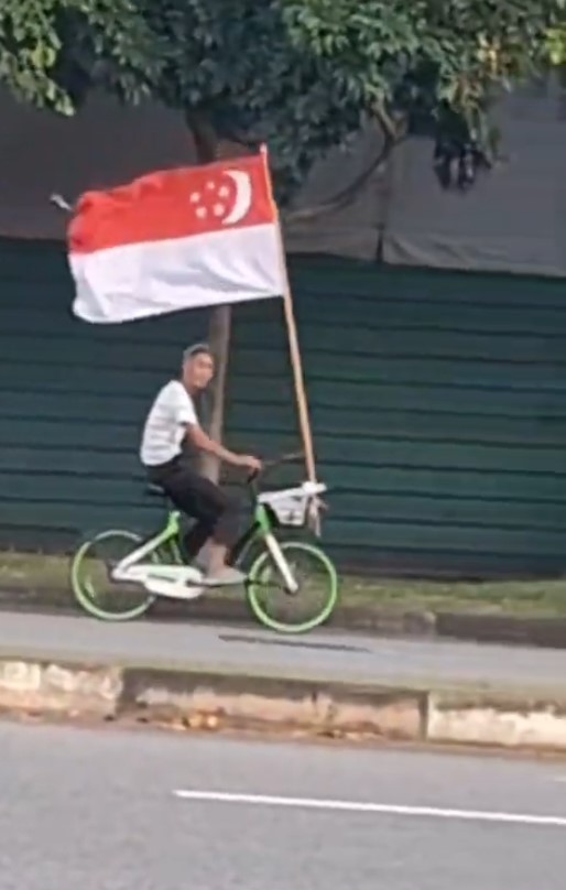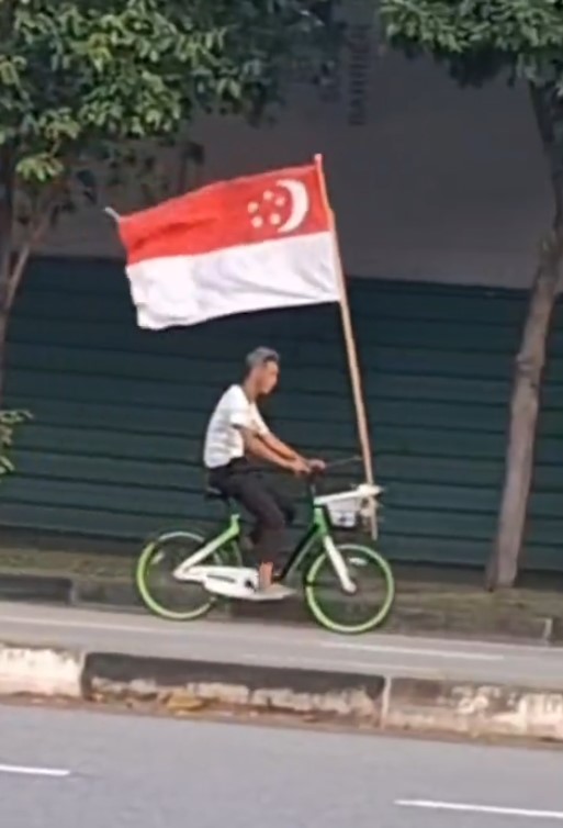 He was seen in a TikTok video cycling along Kallang Road with a large Singapore flag attached to his bicycle.