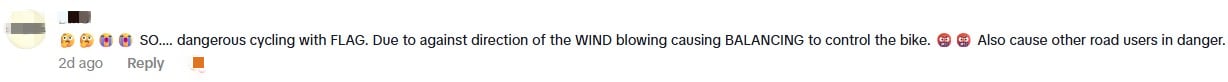 Another pointed out that the flag would cause him to have trouble balancing, putting himself and other road users in danger.