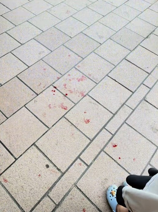 A witness said on XiaoHongShu that the man left a blood trail, and his T-shirt was soaked in blood.