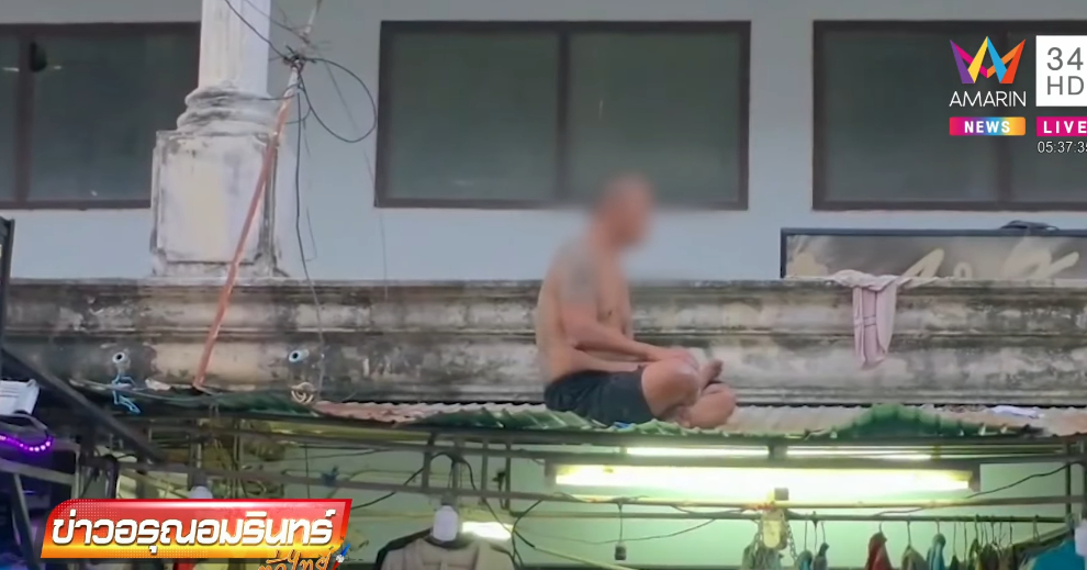 A man in Thailand was spotted meditating after falling from the third floor of a building onto a metal awning, reported Thai news outlet Channel 7.