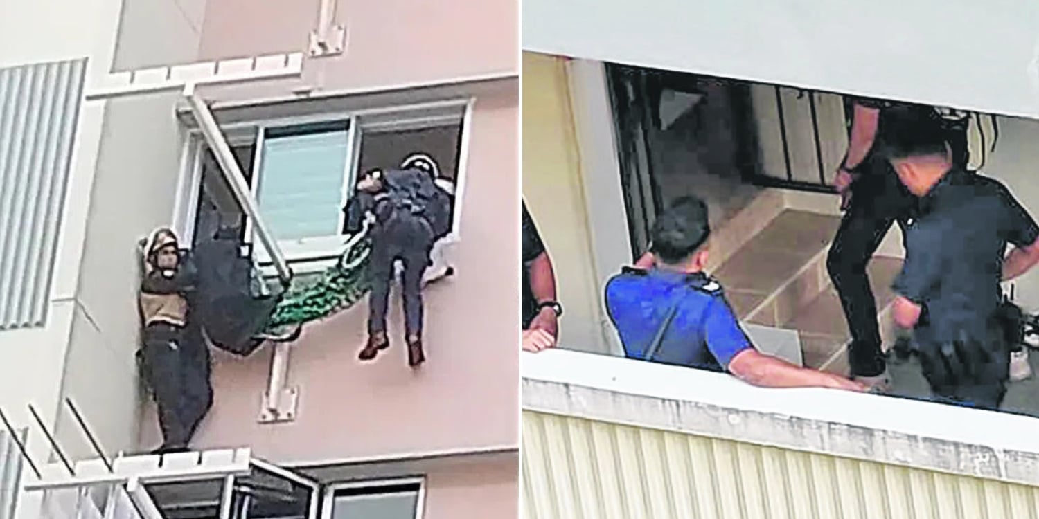 A photo showed SCDF personnel descending from the unit directly above, deploying safety netting as a precaution.