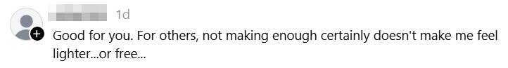 Meanwhile, some netizens believe the OP might regret his decision when he runs out of money, saying financial stability can also cause panic attacks.