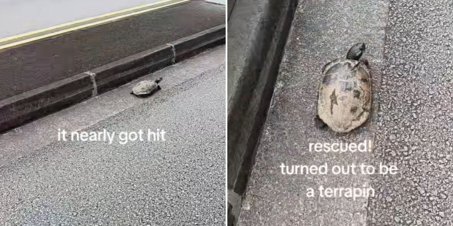 A lost terrapin in Tampines had a lucky escape after a passer-by spotted it wandering dangerously close to a busy road and stepped in to help.