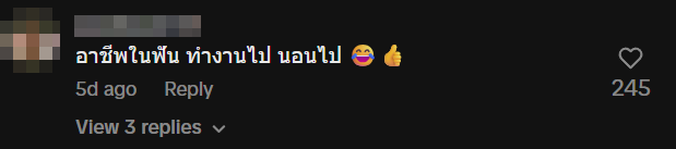 Translation: That’s my dream job. Work and sleep (lying) at the same time.